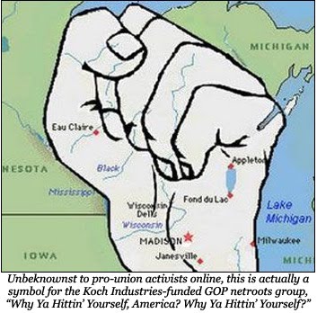 This is the dumb certitude of mistaking paradoxes for a philosophy, the same alchemical lump being sold at both ends of the marketplace as a poison and its own antidote. Only through popular participation could unions have succeeded so well as to somehow become an unnecessary destructive force that no one actually wants. It's the perfect boneheaded conservative argument against unionization: even ignoring history, polling data, Scott Walker's handing away the store and then screaming "stop, thief!" or the reality of Wisconsin's public unions making large concessions and demonstrating their weakness face-to-face with management, it's a proposition that can contradict itself before the introduction of a single fact.